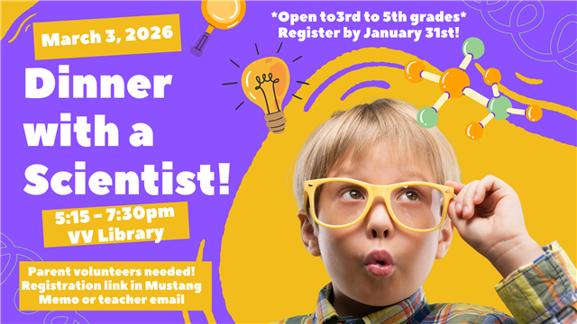 Is your 3rd-5th grade child interested in science? Does your child love to conduct scientific experiments? Here is their opportunity to have dinner with a real scientist and perhaps spark their interest in STEM (Science, Technology, Engineering and Math) careers.